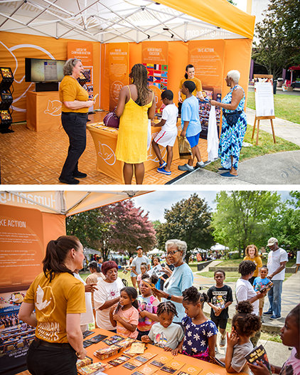Una importante adición a la gama de folletos, vídeos y herramientas educativas de UHR, estas brillantes exposiciones móviles de color naranja aparecen en parques, estadios, patios de escuelas y campus universitarios dondequiera que la gente se reúna.